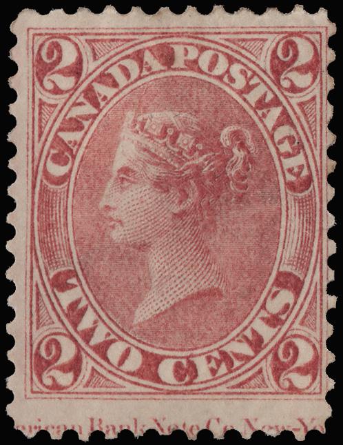 1864, Queen Victoria, 2¢ deep claret rose, perf 12 (Scott 20a), wonderfully fresh, Fine to Very Fine and most attractive. Scott $525. (Image)