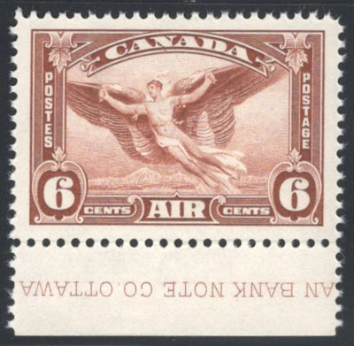 1935 6c Red Brown Airmail, mint never hinged and well centered between four large margins, showing part of the plate imprint in sheet margin, extremely fine. Accompanied by a 2022 PSE certificate grading it as "XF-SUP 95". (Image)