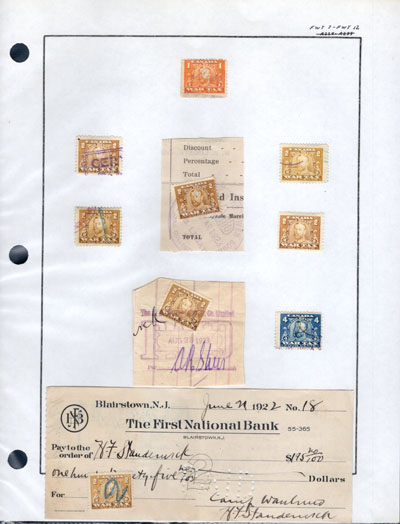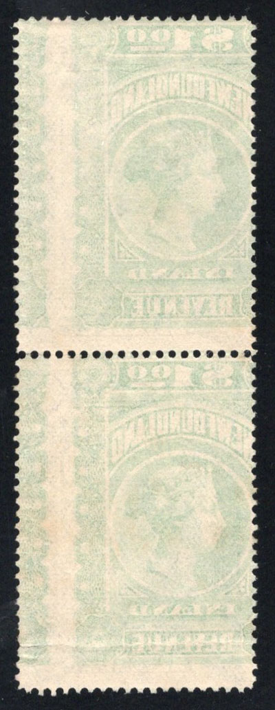 1898 $1 Green Inland Revenue with Heavy Offset on Reverse, a used vertical pair with manuscript cancel, showing a strong offset, fine. Pairs are scarce, even more so with the offset. Walsh R6b, U$340. (Image)