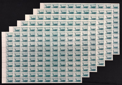 Group of Three Different Airmail Issue Sheets, with Scott #s C6, C8, C9, each is a full sheet of 50 with plate inscription, fresh and very fine. (Image)