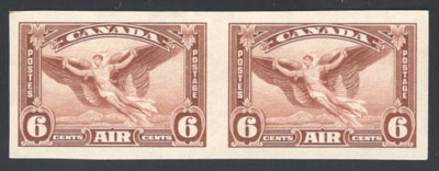 1935 6c Red Brown Airmail Imperforate, a mint hinged horizontal pair, very fine. (Image)