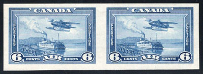 1938 6c Blue Airmail Imperforate, a mint hinged horizontal pair, very fine. (Image)
