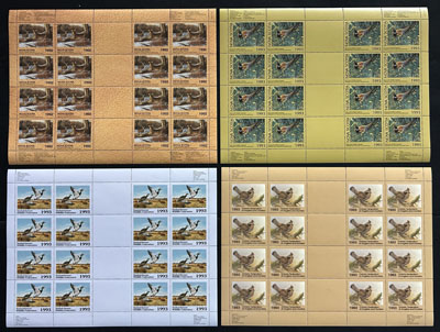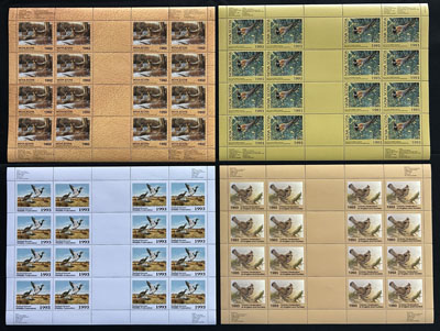 Set of Four Different Provincial Wildlife Conservation Gutter Sheets of 16, the four issued gutter sheets, with Nova Scotia (1992-1993), Saskatchewan (1993) and Ontario (1993), fresh and very fine. (Image)