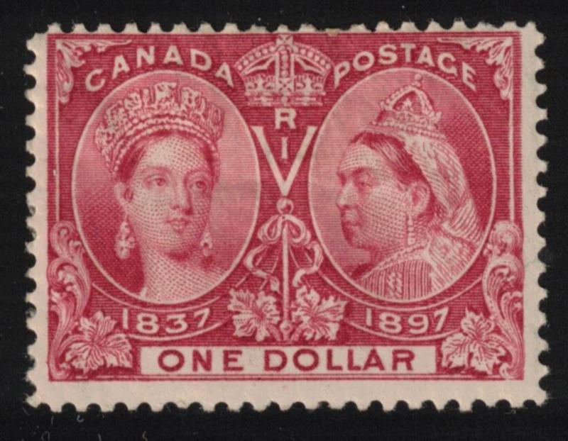 Canada Scott 61 MHR Fine, 1897 $1 Jubilee - Couple nibbed perfs at top. Fine. (SCV $750) (Image)