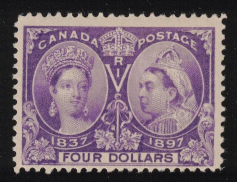 Canada Scott 64 MLH Fine, 1897 $4 Jubilee - Fresh appearance front and back with fabulous color! (SCV $1400) (Image)