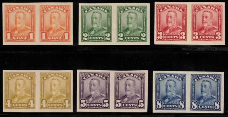 Canada Scott 149-154 MH Imperforate Pairs, 1928 KGV - All previously hinged, F-VF. (SCV $620) (Image)