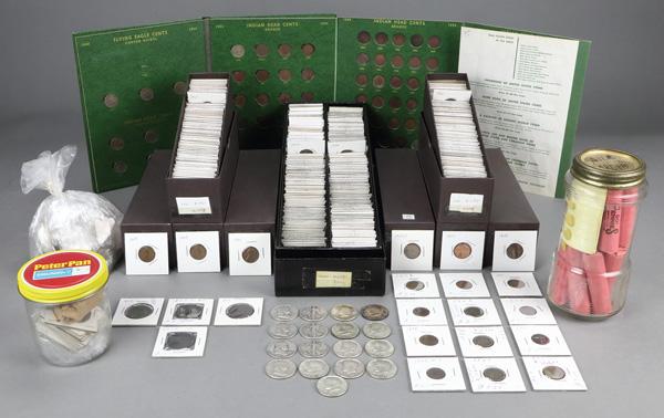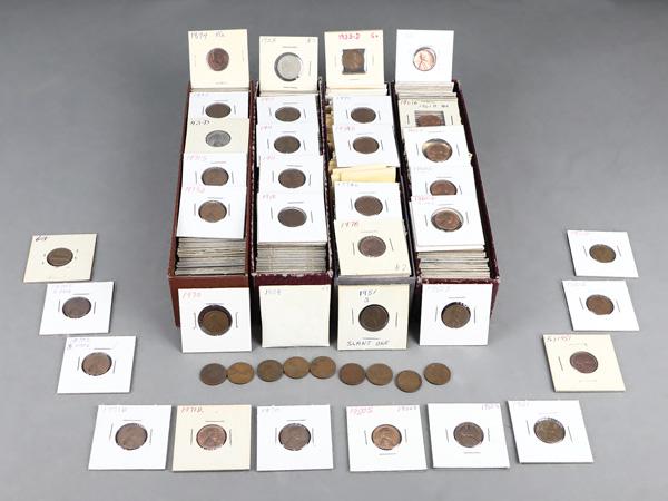 U.S. Indian and Lincoln Penny Collection, 1857-1970, lot of 170+ pennies; highlights include 1857 in Choice VF-XF; 1862, XF; 1864, XF; 1888, Unc. to CU; 1902, 1905, 1906 and 1907 Red-Unc.; 1908-S, Choice Fine to VF; 1909-S VDB, Fine to Choice Fine; 1909-S, VF; 1914-D, VG; 1931-S, Fine to Choice Fine; and numerous additional XF to Unc. coins; please inspect this group carefully, there are a few very nice coins included (170+ coins). Shipping charges apply - weight 4 lbs. (Image)