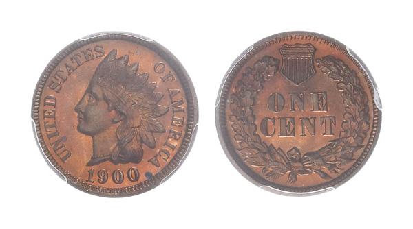 1900, Indian Head Cent, PCGS Graded MS64 RB CAC, PCGS graded Mint State 64 Red and Brown. CAC. (Image)