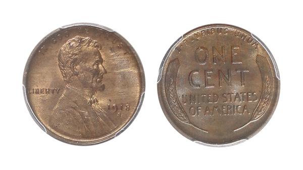 1918-S, Lincoln Cent, PCGS MS64 RB, PCGS graded Mint State 64 Red and Brown. (Image)