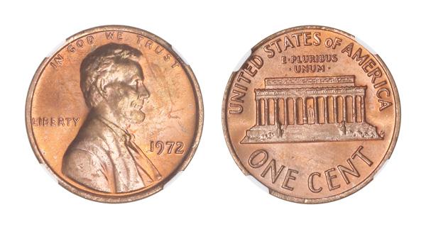 1972, 1C Double Die Obverse FS-103, NGC MS64 RD, NGC graded Mint State 64 Red. (Image)