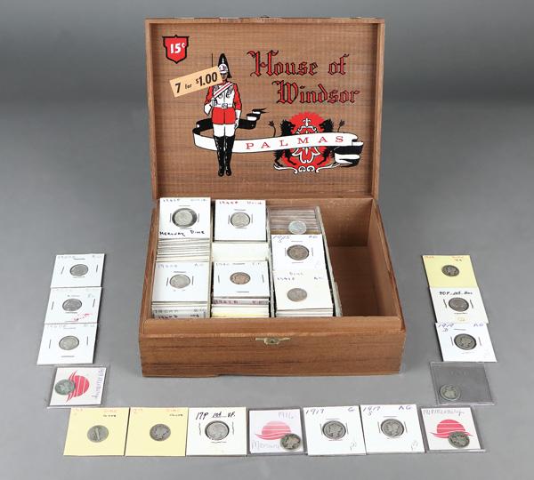 Massive U.S. Silver Dime collection, 1858-1964, U.S. 90% Silver Dime collection highlighted by a trio of Seated Liberty Dimes dating 1858, 1876, and 1890, all in Choice VG to Choice Fine condition; a quartet of Barber Dimes dating 1912-S, 1914. and 1916 (2); almost a complete date run of Mercury dimes, missing the key dates, most in Good to VF condition; a complete date run of Roosevelt dimes with mint marks, mosty Fine to XF; total face value of over $95; interesting lot that has not been searched for dates or varieties. Shipping charges apply - weight 10.4 lbs. (Image)