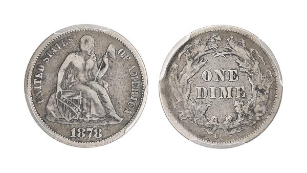 1878-CC, 10C Carson City Seated Liberty Silver Dime, PCGS VF25.(Image)
