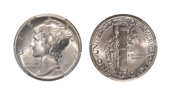 1916-S, Mercury Dime 10C, PCGS MS65 FB, low supply of this coin in uncirculated condition, PCGS graded Mint State 65 Full Bands. (Image)