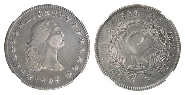 1795, $1 Flowing Hair 3 Leaves Silver Dollar, NGC XF Details Cleaned, comes with old ANACS Cert and holder which had a grade of VF30/EF40; please inspect condition for yourself; amazing coin to add to any collection. Shipping charges apply - weight 1 lbs. (Image)