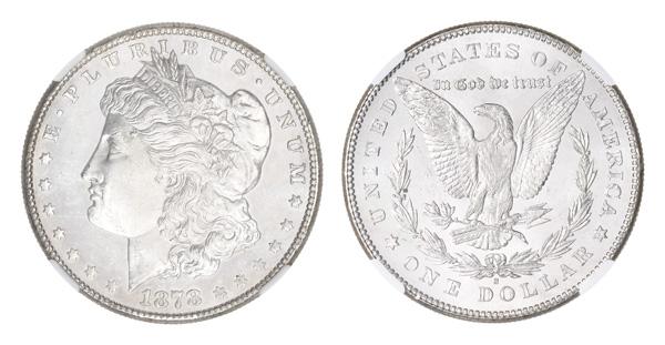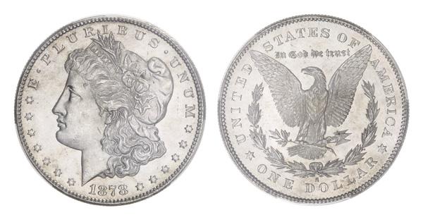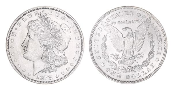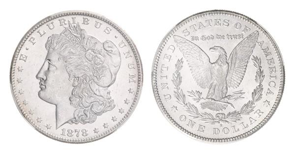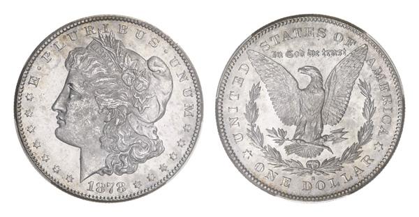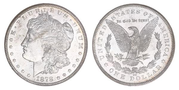 1878-CC, $1 Morgan Silver Dollar, PCGS MS63, PCGS graded Mint State 63. (Image)