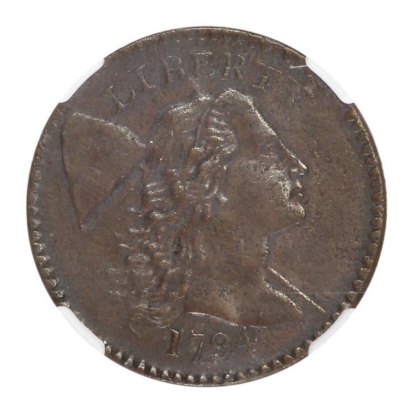 1794 1C Liberty Cap Large Cent NGC AU Details - Environmental Damage, NGC graded Details of About Uncirculated 50. (Image)