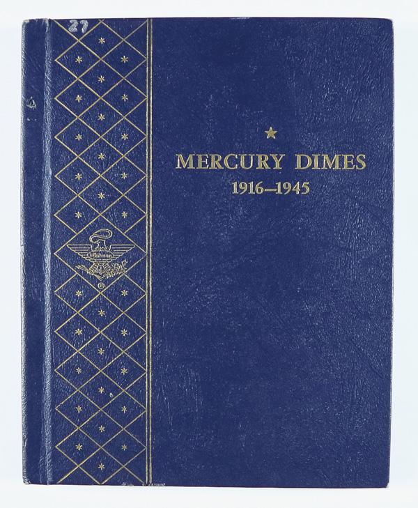 Collection Of 10C Mercury Dimes, 1916-1945, Whitman folder complete minus the 1942/41 coin; better dates include: 1916-D Fine, 1921 Good, 1921-D Good-Fine, 1926-S AG-Fine, 1931-D VF & 1934 D/D VF-XF; 78 total coins; $7.80 face value in 90% silver; coins range from AG-XF condition; please inspect. (PDF for this Lot) (Image)