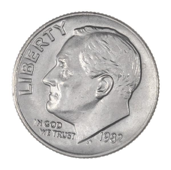 1982 No Mintmark 10C Mercury Dime ANACS MS63/65, old ANACS paper cert, ANACS graded Mint State 63. (Image)