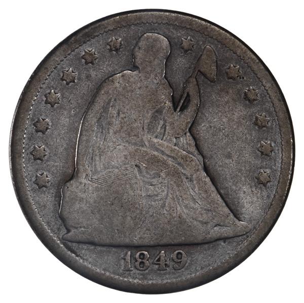 1849 $1 Seated Liberty Silver Dollar, in Good condition; please inspect. (Image)