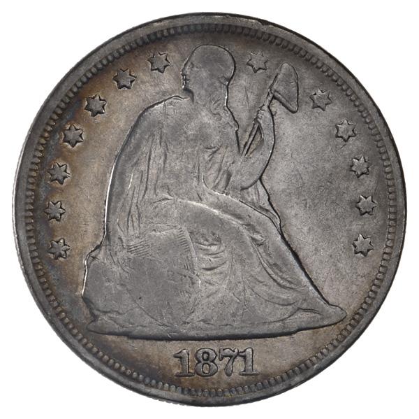 1871 $1 Seated Liberty Silver Dollar, in Fine-VF condition; please inspect. (Image)