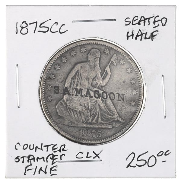 1875-CC 50C Seated Liberty Silver Half Dollar Counterstamped, please inspect condition, Fine to Very Fine. (Image)