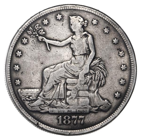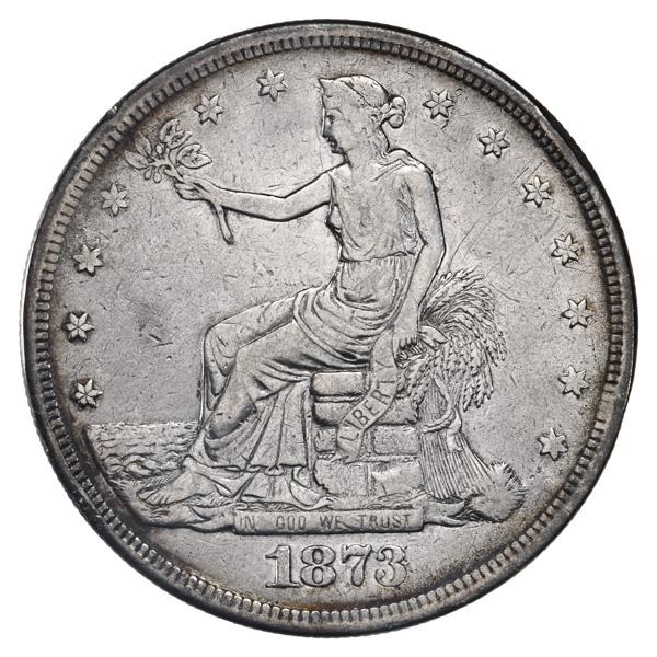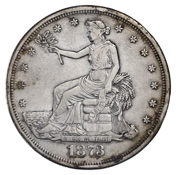 1873 $1 Trade Silver Dollar, First year of issue; in VF condition; please inspect. (Image)