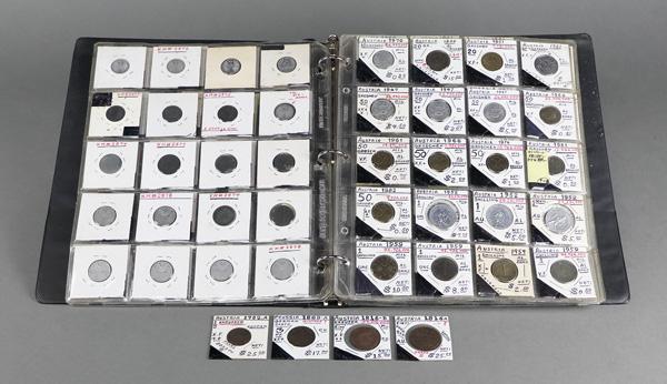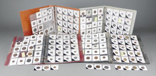 Scandinavia, Collections of Scandinavia, Latvia and Estonia Coins, 1861-2002, lot of over 300 coins mounted in cardboard 2x2s that are housed in 4 different 3 ring binders; countries include Sweden, over 60 coins dating from 1861 to 2002, highlighted by a 2 Ore, 1861 in VF, a 1912, 1 ore in AU-Unc, and a 1921 5 Ore in XF; Norway includes over 55 different coins hioghlighted by an 1875, King Oscar 5 Ore bronze coin in VG-Fine, an 1889 2 Ore Oscar II in VF; and an 1896, 5 Ore coin in VF; Denmark includes over 100 coins dating from 874 to 19790 hightlighted by an 1874, King Christian IX. 5 Ore coin in XF, a 1927, 5 Ore coin in Fine-VF. and a 1943, 5 Ore coin in AU; the last album includes coins from Finland, Greenland, Estonia, Iceland, and Latvia, coins date from 1901 to 1999 and are highlighted by a Finland, 1901, 5 Penni, in VF, a 1921-H, 1 Markka in AU condition; Greenland, 1926, 50 Ore and 1 Krone Polar Bear coins in VF and dozens of other coins that should be inspected; an excellent assortment for the beginning to advanced collector that should hold mny desirable coins; unsearched and untouched for years (300 + coins). Shipping charges apply - weight 12 lbs. (Image)