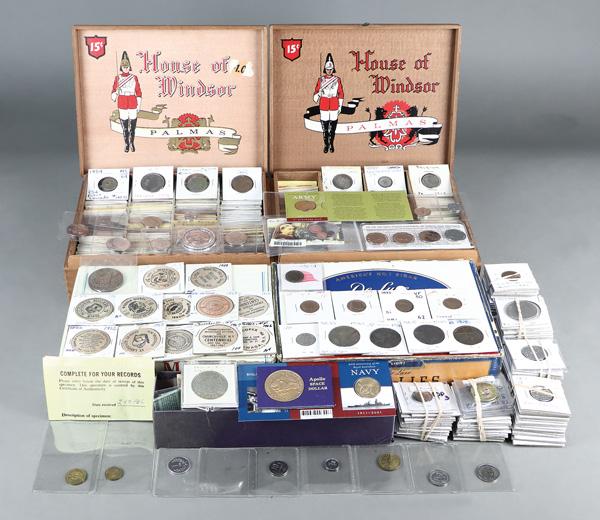 Worldwide Treasure Trove Coin Collection, 1860s-2022, lot of over 900 Coins in 2x2 plastic and paper flips and 2x2 paper envelopes, includes countries from "A to Z" packed into cigar boxes that were only given a cursory review; this lot must be seen, but there are many highlights included with condition ranging from VG to Gem Uncirculated; this is an amazing lot that is sure to provide hours of fun for the beginning and intermediate collector as well as providing an excellent inventory for the serious eBay seller (900+ coins). Shipping charges apply - weight 24 lbs. (Image)