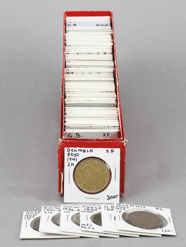Worldwide Collection Of (100+) Coins Including Some Silver, over $9,000 in catalog pricing as done by the owner; all in 2x2s labeled with condition and catalog price; includes coins from: Germany, Australia, Denmark, Great Britain, New Zealand, & more; perfect lot an ebay seller; please inspect (100+). Shipping charges apply - weight 2.6 lbs. (Image)