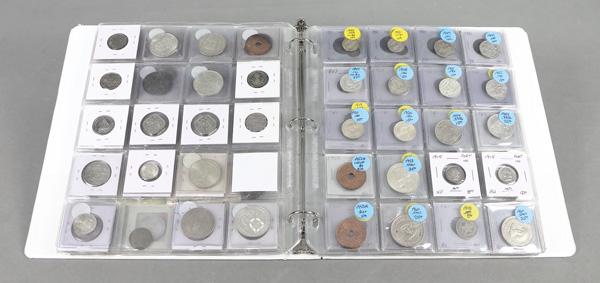 Stockbook of Foreign Coins, 1890-1976, a large and diverse assortment with a significant amount of silver content; a great range denominations and locations, with Vatican City, Germany, Great Britain, and Portugal being represented significantly; photos and video included online. Shipping charges apply - weight 5.4 lbs. (Image)