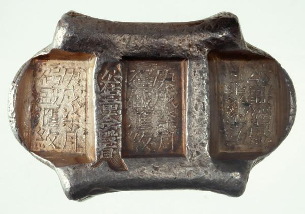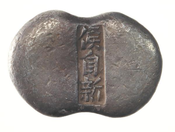 Japan, Ansei Era Silver Chogin Ingot, 1837-58, weight of 133 grams; very fine and desirable. (Image)
