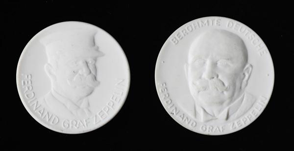 Collection Of Graf Zeppelin Related Medals & Medallions, includes: 1929 Germany Graf Zeppelin Weimar Republic Bronze Medal, 1924 Zeppelin World Tour Hugo Eckner Brass Medal, 1905 Germany Zeppelin Flight Friedrichhsgafen-Mainz Medallion, Graff Ferd V. Zeppelin "Gott Strafe England" Medal, 1922 Germany Wiemar Republic For The Front Soldier Meeeting Bronze Medal, 1929 World Flight Of Graf Zeppelin Porcelain Medal (2) Porcelain Ferdinard Graf Zeppelin Medals, 1902 Edward VII Coronation 32mm Medal by Fenwick, Hugo Eckeener 5 Mark Charm Coin, Graf Zeppelin France Token Shell (Bronze-Aluminum) (4) Graf Ferdinand Von Zeppelin medals, a Graf Zeppelin pin, & a R101 Largest Airship Aluminium Advertising Novelty Medal (16 items). Shipping charges apply - weight 0.8 lbs. (Image)