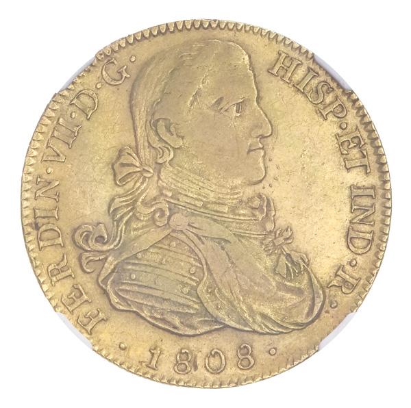1808-Mo Thaler Mexico City Mint 8 Escudos Ferndinand VII NGC XF45, NGC graded Extremely Fine 45. (Image)