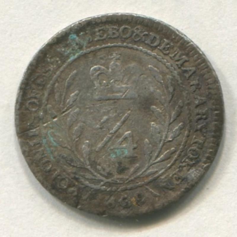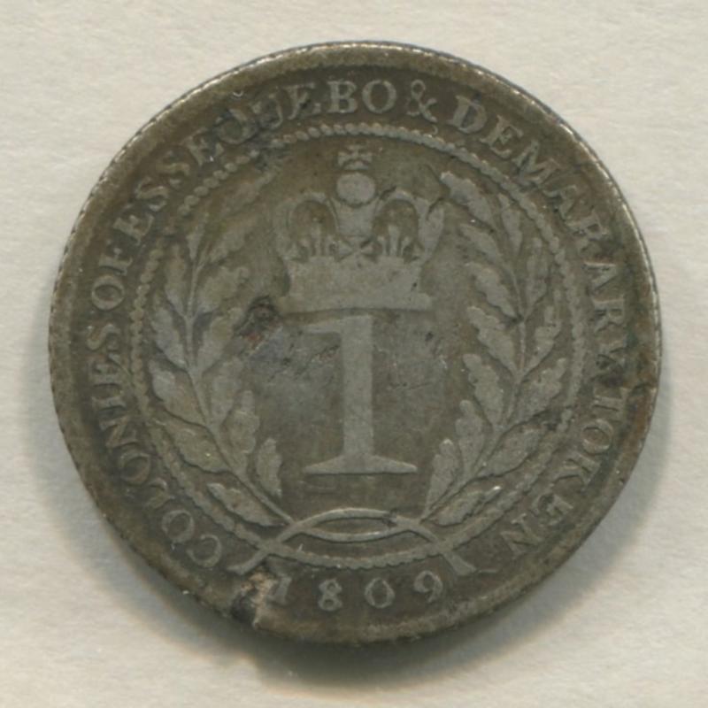 Demerara and Esseuibo (now Guyana) former British colony 1808-1835, George III, 1809 1/4 Gulden silver token fine (Image)