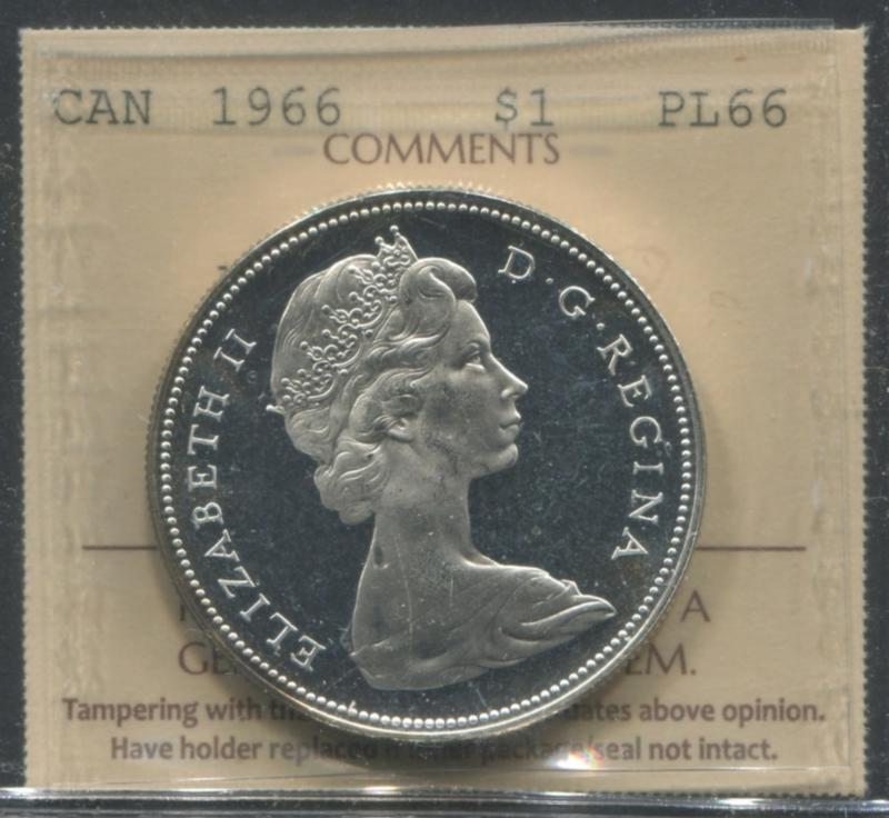 Canada 1966 Silver Dollar ICCS PL 66 LB Heavy Cameo. A superb coin, great eye appeal. Worthy of a high quality silver dollar collection. (Image)