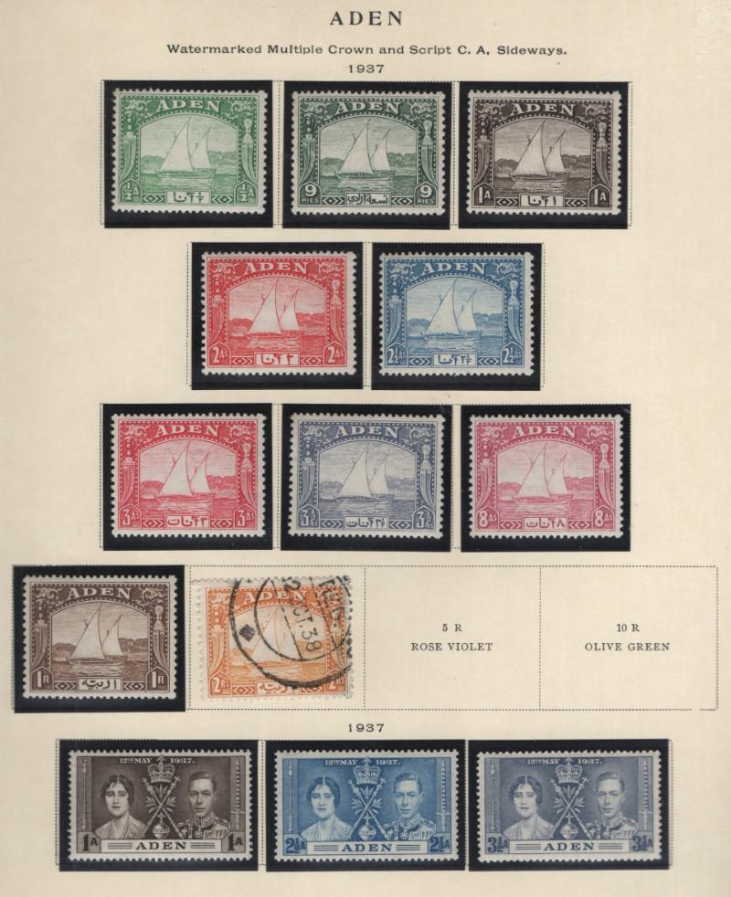 Mostly Unused Collection abt (150) on Scott pgs incl Used: #10 & Unused: 1-9, 16-26, 30-31, 61A, Aden Kathiri 1-41, Aden Quaiti 1-40, 52 & others, gen F-VF H (Image)