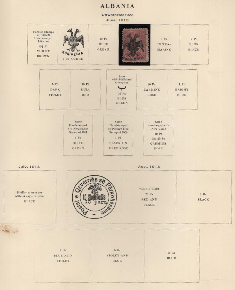 Albert 25c trial color essays in (8) sheetlets of (25); center stamp Scott type A46 w/o value, others are type A45 w/ "25" value, all w/ Sunday labels; each sheetlet in diff color, w/o gum, gen VF (Image)