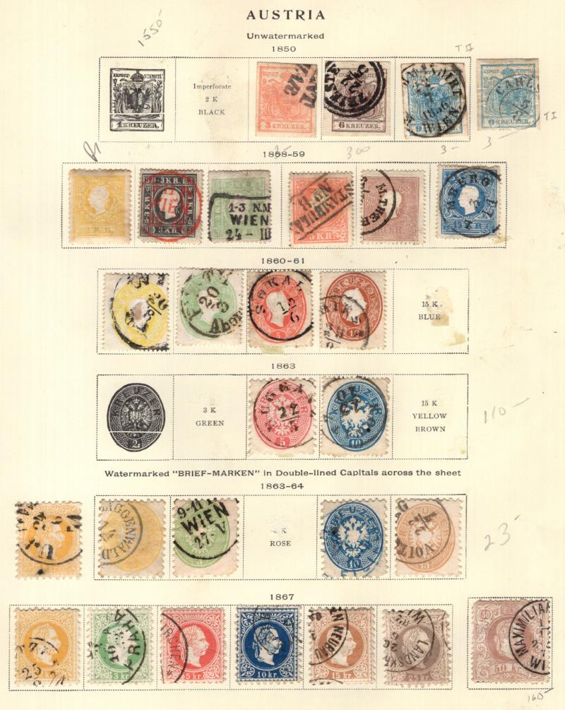 REVENUES Attractive Collection all used (100s) 1854-1976 w/ dup in a Lighthouse album, well written up & IDed (in German) incl many of the delicate ("Leaf Print" designs 1854-70), subsequent Franz Josef types to 1910 on wmk & fugitive paper w/ values to 20fl & the later various Eagle types, gen F-VF (Image)