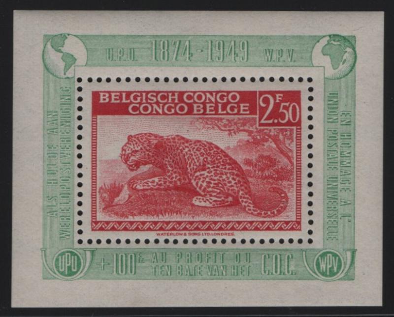 Special S/S of (1) for 2.50fr Leopard, Flemish at top, with green private Ovpt honoring the UPU; error of color as Flemish stamp #219 should have received a blue Ovpt; footnoted but not valued in Officiel; NH scarce, VF+ (Image)