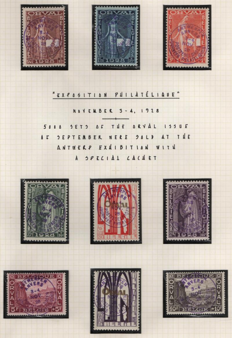 B69-B77 var F-VF+ First Orval Abbey unused, each w/ special Antwerp Philatelic Day violet cancels applied, only (5000) sets produced (Officiel 266A-K CV for hinged) (Image)