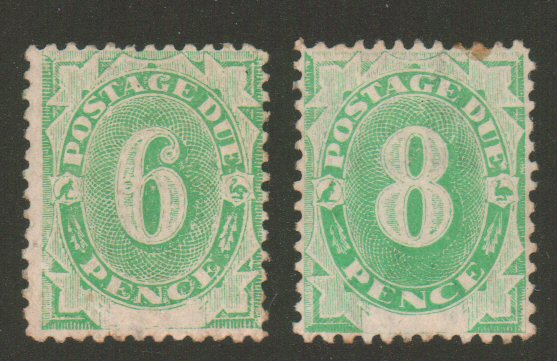Australia, Postage Due, 1902, 6d and 8d emerald green, Scott J6-J7, o.g. Scott $162.50. - estimate $40 - 54. (Image1)