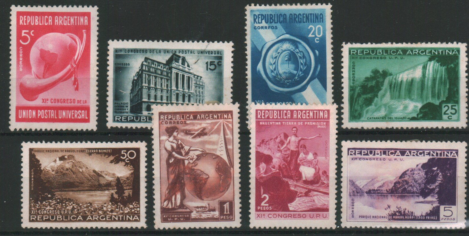Argentina, 1939, 5c-5p UPU Scott 459-466, mint og, hinge remnants, Very Fine, Scott $103. - estimate $26 - 34. (Image1)