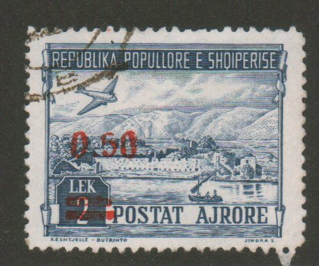 Albania, 1952 provisional, Scott C62, used, red overprint, Scott $150. - estimate $38 - 52. (Image1)