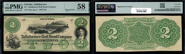 Bainbridge, Georgia - Southern Bank of Georgia $2 Mar. 1, 1858 G8a PMG About Uncirculated 55 (Haxby-G8a), annotations, PMG graded About Uncirculated 55. (Image)