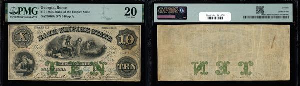 Rome, Georgia - Bank of the Empire State $1 July 18, 1860 G8c PMG Very Fine 20 (Haxby-G8c), PMG graded Very Fine 20. (Image)