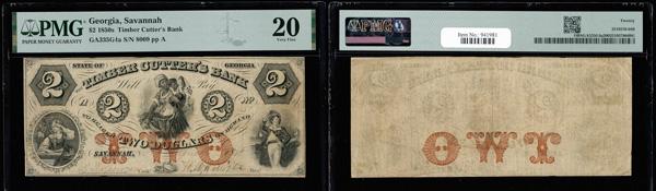 Savannah, Georgia - The Timber Cutter's Bank $2 April 1858 G4a PMG Very Fine 20 (Haxby-G4a), PMG graded Very Fine 20. (Image)