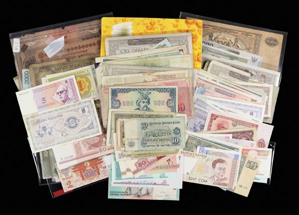 Worldwide Banknote Eastern Europe, Russia and Russian Influence Issues Collection, 1905-1980s, lot of over 150 banknotes emphasizing Russian related banknotes, highlighted by Romania, Yugoslavia, Germany and dozens of issues that need to be inspected carefully; condition ranges from Good with issue to Gem Uncirculated; please inspect (150+). Shipping charges apply - weight 2 lbs. (Image)