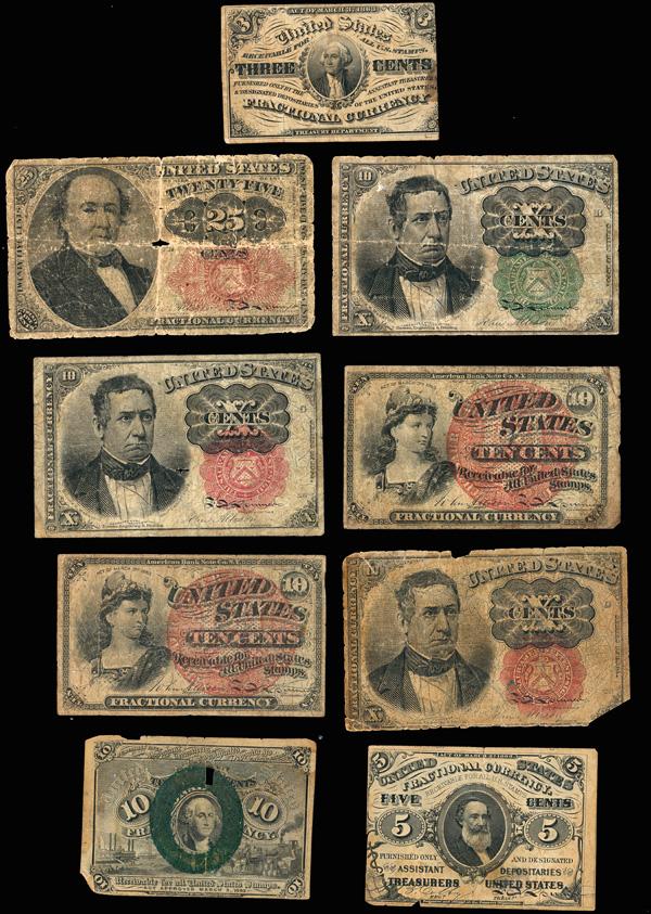 Fr. 1238 5¢ Third Issue Lot of 2 Notes (Fr-1238), Rothert-47. Lot of 2 notes. Portrait of Clark at center, Green Back, Choice XF to AU condition or better. (Image)