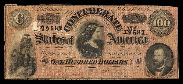 Group of (2) $100 Confederate State Of America Bank Notes, 1862-1864, condition ranges from Poor-VF; please inspect (2). (Image)