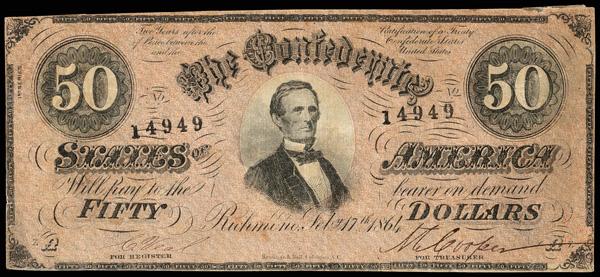 Group of (4) Fr. T-66 1864 $50 Confederate States Of America CSA Bank Notes (Fr-T-66), notes in VF-XF condition; please inspect (4). (PDF for this Lot) (Image)